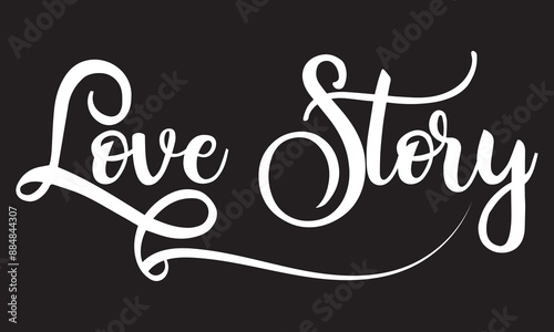 © Amit, Fototapeta premium Love story text. Script Calligraphic Typography Cursive white text lettering and phrase isolated on the black background. EPS 10/AI
