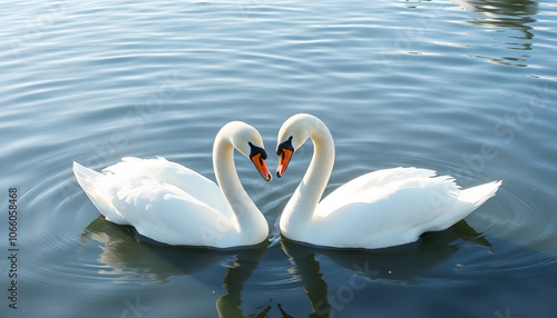 © Sergey, Naklejka premium love swans while curling isolated with white highlights, png