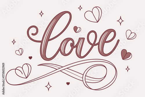 © Shaon, Naklejka premium Love typography with 3D metallic gradient — simple luxury Valentine 2026 illustration for print and web.