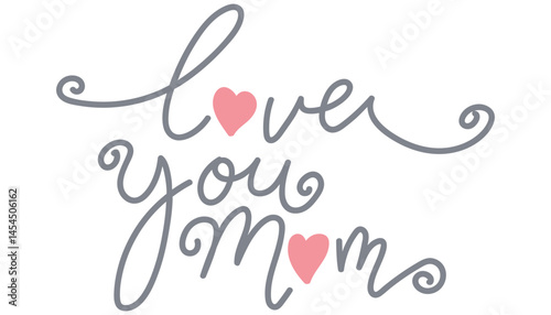 Fototapeta premium Love you mom handwritten art with hearts. in flat color style