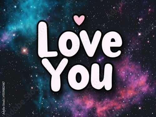 Fototapeta premium Love You Text with Cosmic Background and Pink Heart