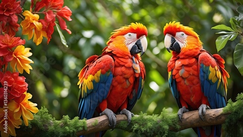 © Masud, Obraz premium Lovebirds in Brazil: Parrots Embracing on Dia dos Namorados
