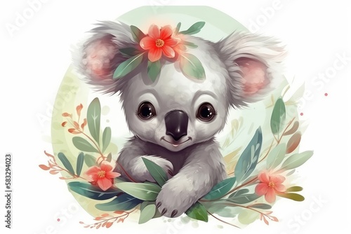 © Man888, Fototapeta premium Lovely Baby Koala floral