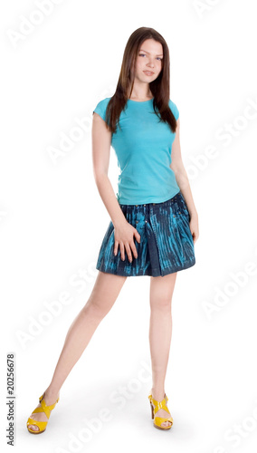 © Aleksandr Kurganov, Fototapeta premium Lovely brunette in denim skirt