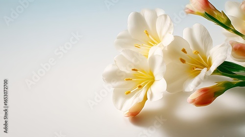 © InkCrafts, Naklejka premium Lovely close-up of delicate white flowers with soft pink buds.