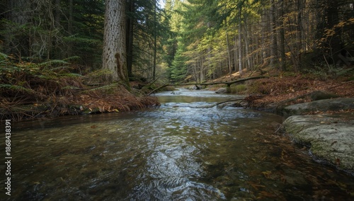 © VolumeThings, Obraz premium Lovely creek in pine woods