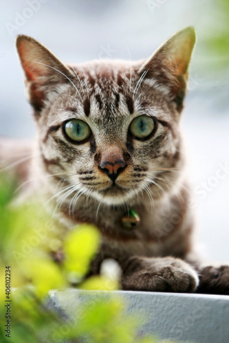 © Khemmanat, Fototapeta premium Lovely gray cat sitting at outdoor