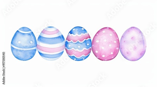 Obraz premium Lovely handpainted pastel Easter eggs in a charming border, perfect for festive springtime art and decor.
