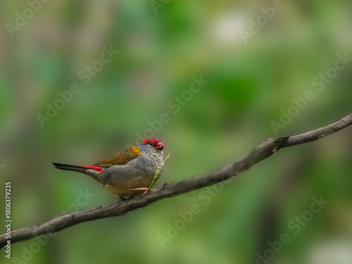 © david hutchinson, Fototapeta premium Lovely Isolated Firetail Feeding On Grass Seed