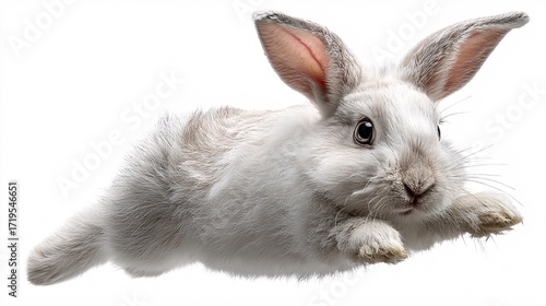 © traitip, Obraz premium Lovely rabbit floating with ears flying up in the air, white background