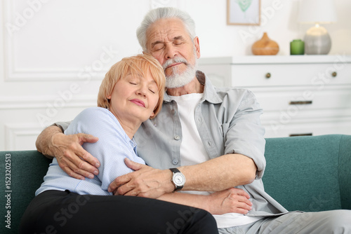 © New Africa, Fototapeta premium Lovely senior couple together on sofa at home