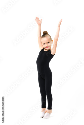 © o_lypa, Obraz premium Lovely small gymnast girl in black leotard