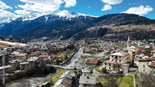 © DVS - Drone Visuals, Naklejka premium Lovely town in the Italian Alps.