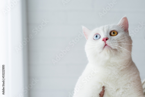 © Q88, Fototapeta premium lovely white cat image with two color eyes at home