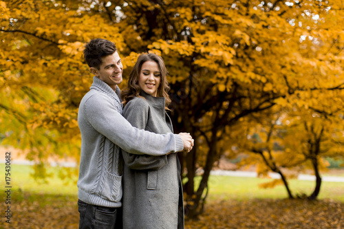 Fototapeta premium Lovely young couple in the autumn forest