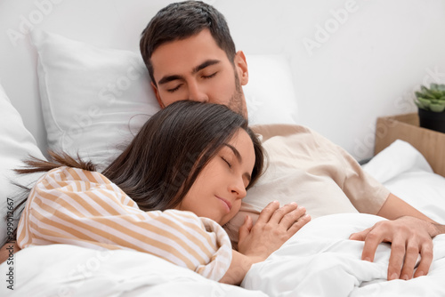Fototapeta premium Lovely young couple sleeping in bed