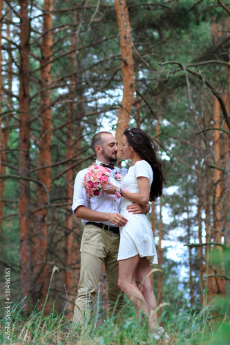 Fototapeta premium Lovers newlyweds. Beautiful couple in love. Loving couple in the garden among...