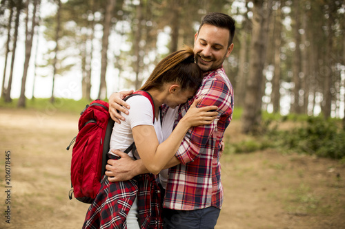 © BGStock72, Fototapeta premium Loving coulpe having fun in the forest at spring time