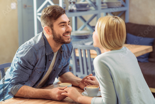 Fototapeta premium Loving couple sitting at the table