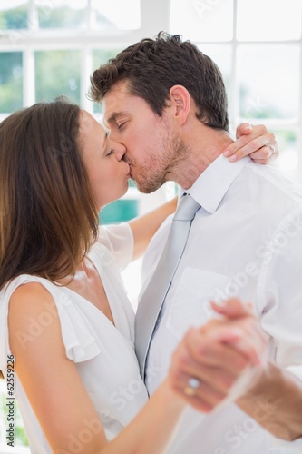 © lightwavemedia, Fototapeta premium Loving young couple kissing at home