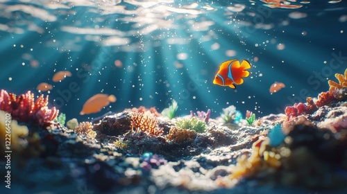 © Petchladda, Fototapeta premium Low angle of a coral reef ecosystem thriving under clear ocean water.