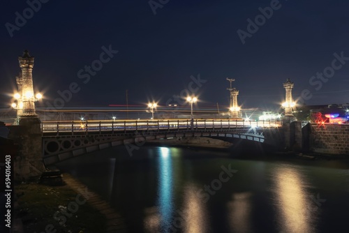 Fototapeta premium Low-angle of the La Concordia bridge at night, Matanzas, Cuba