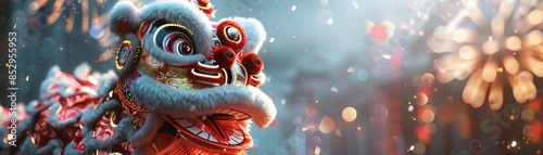© wasan, Fototapeta premium Low-angle shot of a majestic Chinese New Year lion dance
