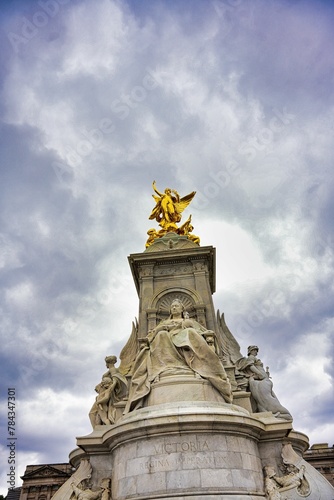 © Wirestock, Fototapeta premium Low angle shot of Queen Victoria Memorial.Golden monument winged statue angel near Buckingham Palace