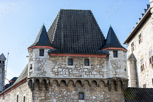 © Reiner, Fototapeta premium Low angle view at a tower of Stolberg castle in Stolberg, Eifel