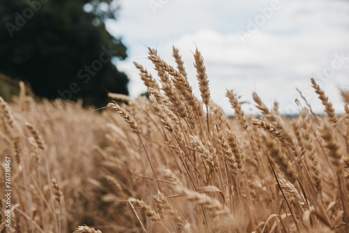 © Alena, Fototapeta premium Low angle view of a wheat crop field.