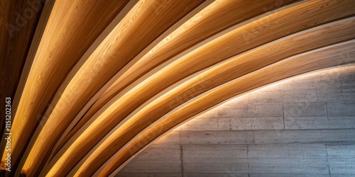 Obraz premium Low angle view of a wooden ceiling illuminated by natural light, showcasing...