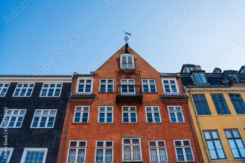 Fototapeta premium low angle view of beautiful colorful houses against blue sky, copenhagen, denmark