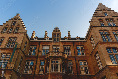 Fototapeta premium low angle view of beautiful old building and blue sky, Ghent, Belgium