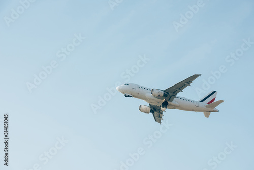 Fototapeta premium Low angle view of flight departure of airplane in clear sky