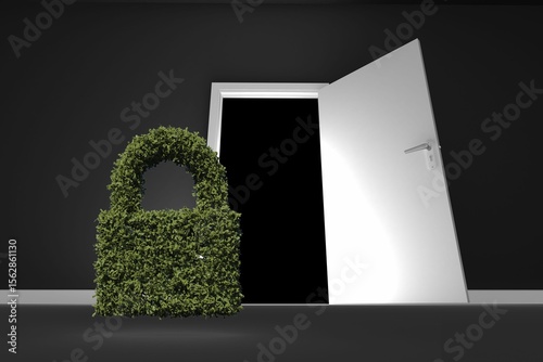 © vectorfusionart, Obraz premium Low angle view of padlock by open door