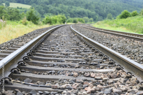© Tim Bird, Fototapeta premium Low angle view of railway track.