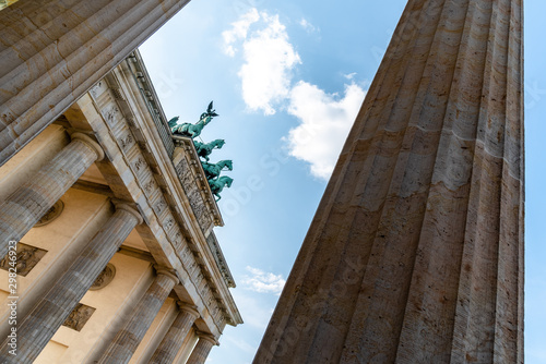 Naklejka premium Low angle view of the Brandenburg Gate in Berlin at evening