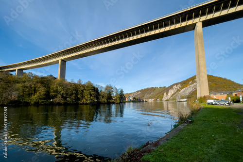 © Mounir, Fototapeta premium Low angle view of the Charlemagne route bridge in Dinant