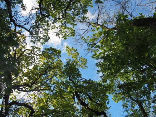 © Andrej, Obraz premium Low angle view trees and blue sky