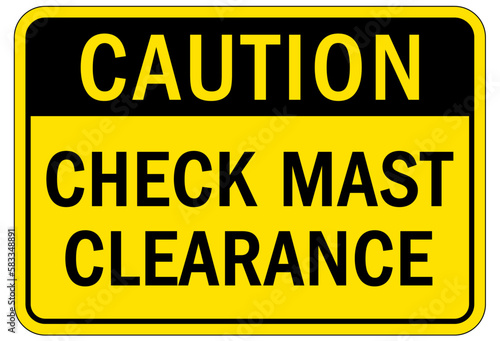 © middlenoodle, Fototapeta premium Low clearance warning sign and labels check mast clearance