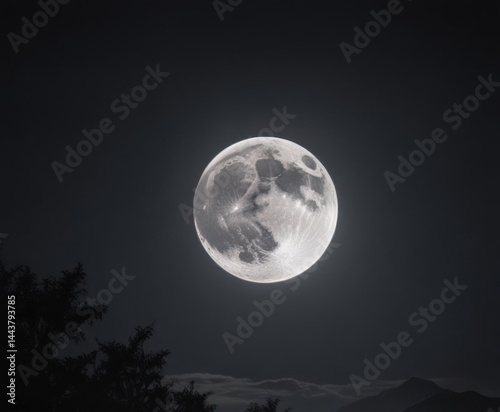 © Rattana, Obraz premium Low-hanging full moon casts eerie glow on dark, starless sky, landscape, weather