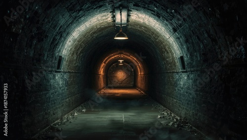 Obraz premium Low-light corridor with subtle lighting, suitable for interior design or...