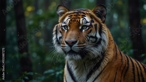 © Sandra, Fototapeta premium Low Light Photography: Ink Painting Tiger in the Forest, Generative AI