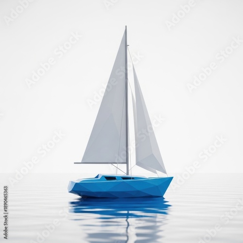 Fototapeta premium Low-poly blue sailboat on calm water