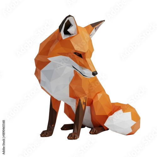 Fototapeta premium Low poly orange fox sitting