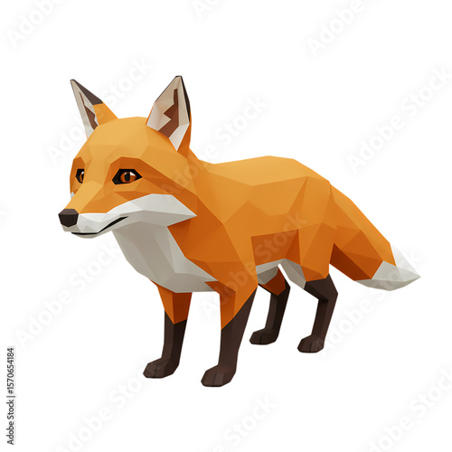 Obraz premium Low-Poly Red Fox: 3D Model Render