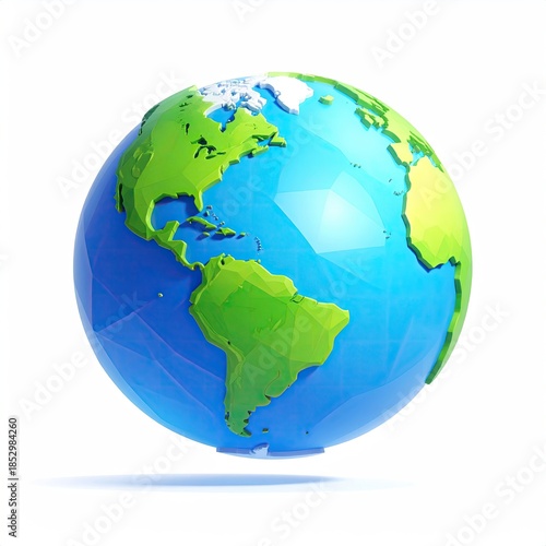© Agyar, Naklejka premium Low-poly rendering of planet Earth with continents, sea and clouds
