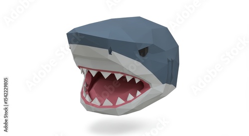 © widiati, Naklejka premium Low-poly Shark Head: Geometric Ocean Predator