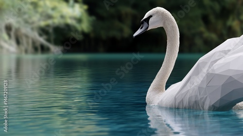 Obraz premium Low-poly swan on tranquil water