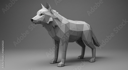 Obraz premium Low-Poly Wolf: Monochromatic 3D Render AI Generated